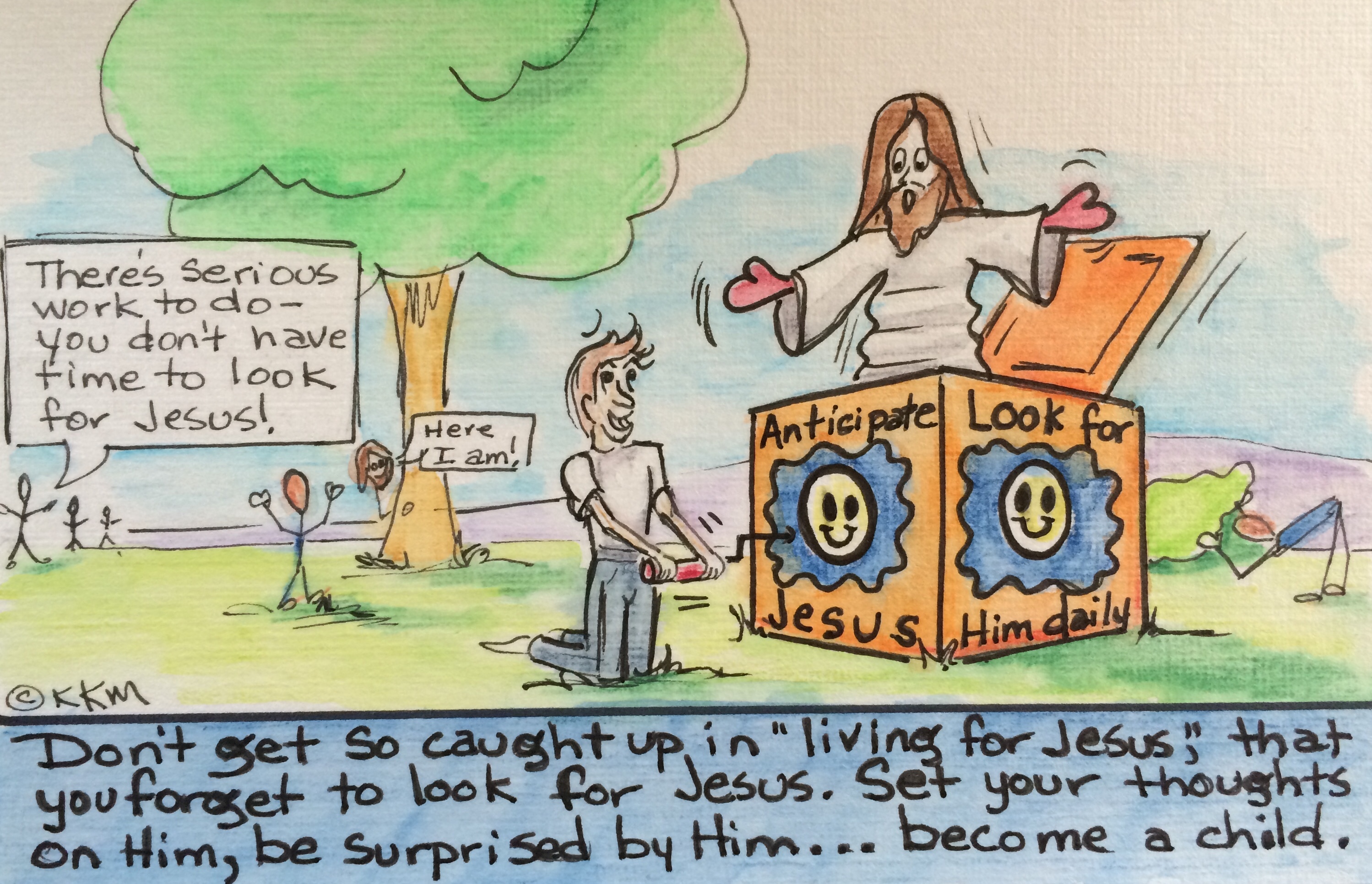 Life in anticipation of Jesus is like being a child again, being left to be watched over by your favorite “baby-sitter,” playing peek-a-boo, treasure hunting, building forts . . .you are fully engaged and fully aware–enjoying your moments. Become a child again . . . Anticipate the “POP.”