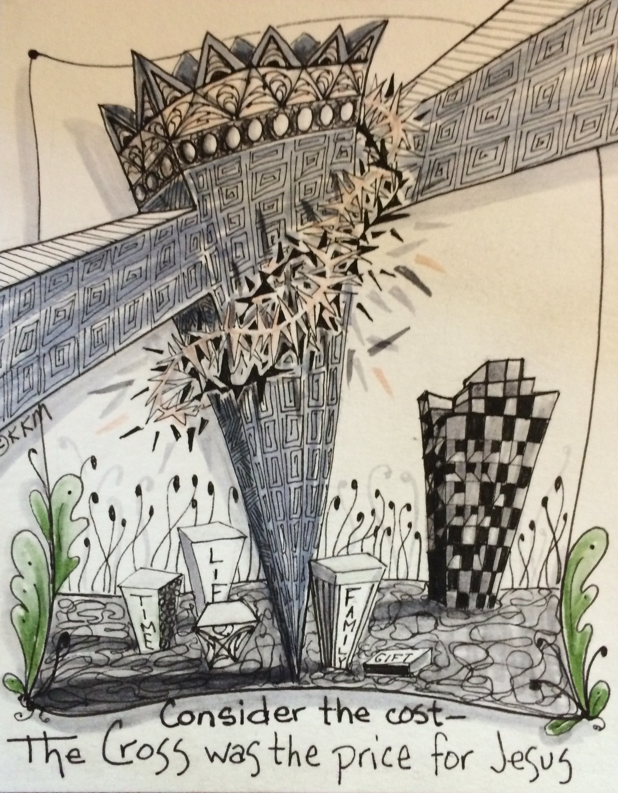 The cost–I never understood the verse about hating your mother and brother . . . until I had to choose what/Who I was going to believe. Who knew there would be a cost of friendships and family when I chose faith in the simple gospel of Jesus Christ and Him crucified. Now I understand that verse a little bit more. But when I compare that to the cost of Christ it pales in comparison. In fact, it’s nothing. Sometimes we (I) have big plans of what a difference we (I) will make in this world. We (I) want all the kudos and the fame, but the price? There’s always a price–what will you pay? (Oh, and if you think doing nothing is an option, there’s a price there too–when it comes to eternal life, it is an even bigger price.)