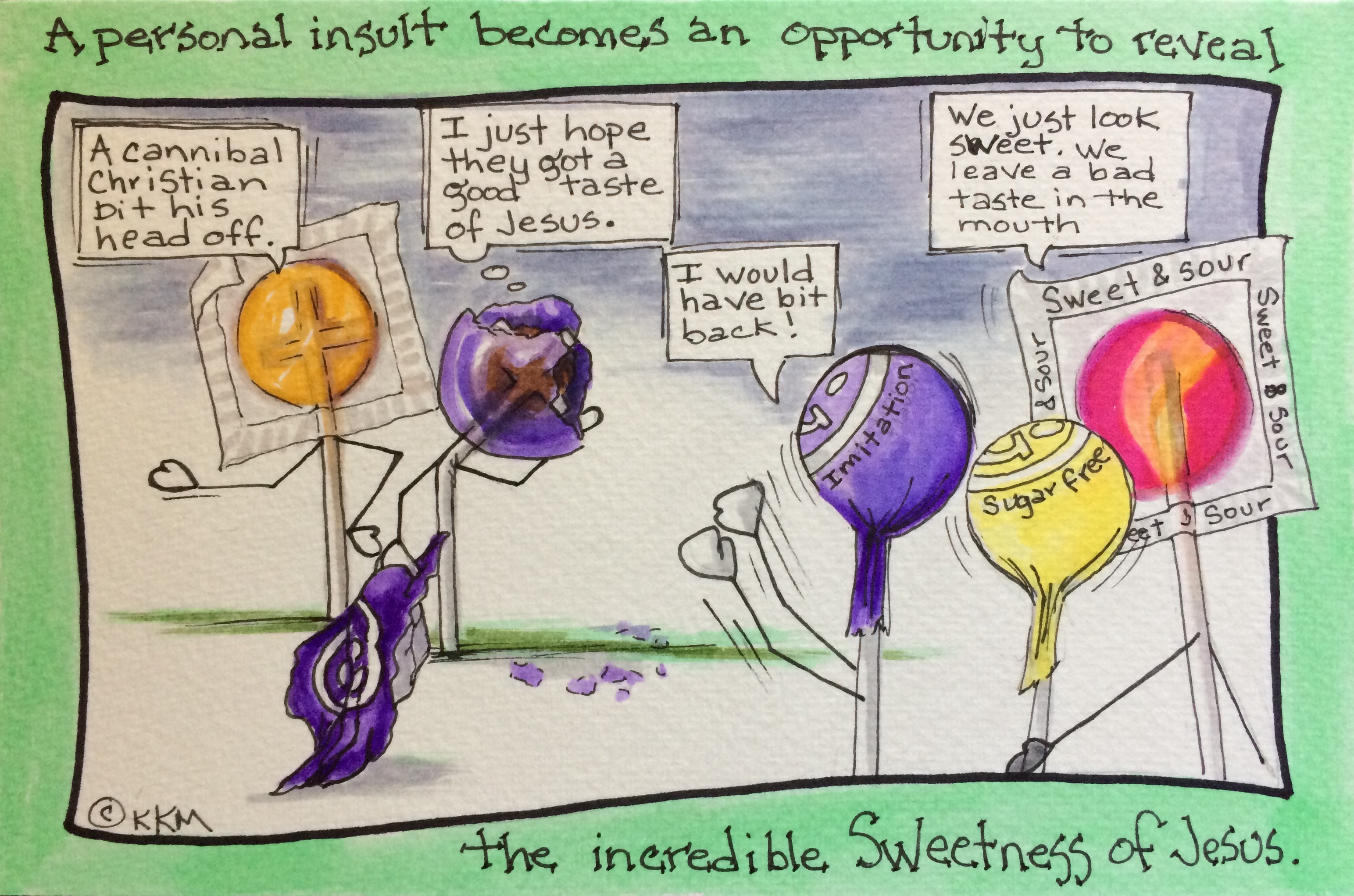 So (I’m speaking to myself especially here), next time your head gets bit off unjustly, think about it as Jesus giving us an opportunity to show His sweetness–after all, the sweetest treat is always at the center and some bites have to be taken by someone to get to it. This may be their only opportunity to experience “Sweet Jesus.”