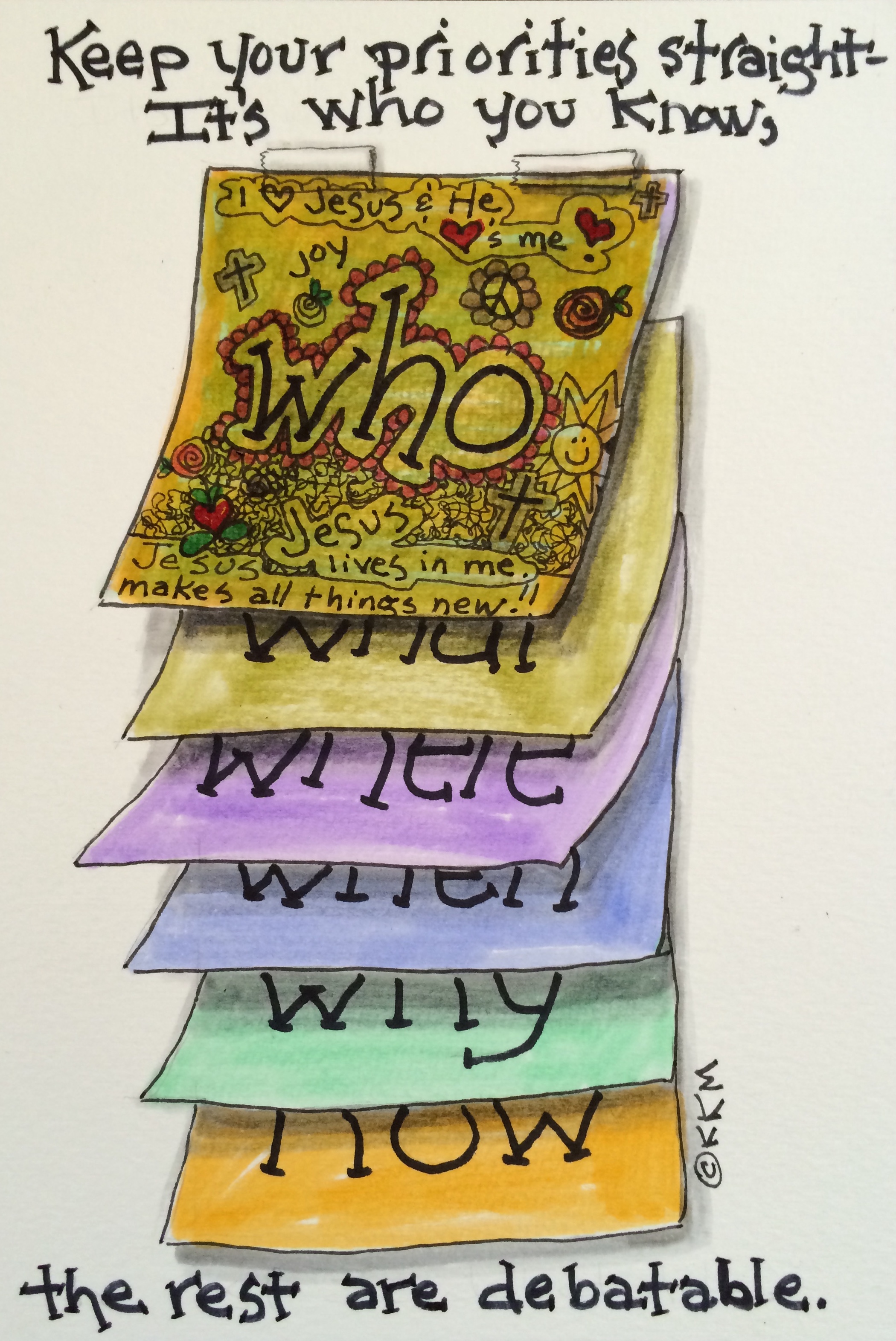 I don’t want to be that person, do you?  It’s all about keeping our priorities straight.  The when, where, what, how and why are all important but WHO is ALL important.  Your eternal life hinges on Who you know and Who knows you.