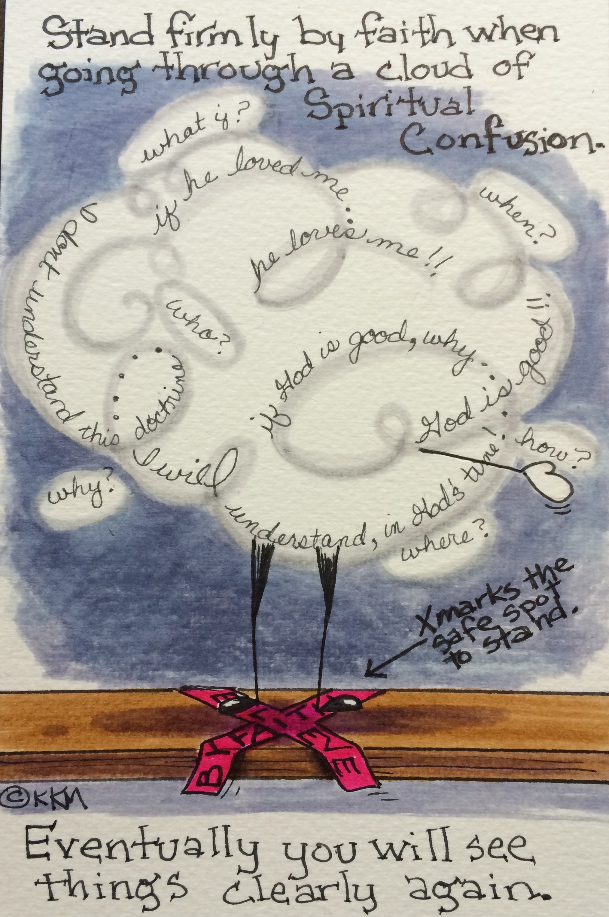 Metaphorically speaking, I doubt I’m the only one out there who has been in the clouds about God, life, doctrine, tragedy and so on. I have felt like I’m walking a plank blindfolded. That is when it’s time to STAND! Stand in your faith, believe Jesus’ promises that He will make things clear and trust that God is working all along. Just as sure as clouds will come, clouds will leave, and you will be able to see again and know that you had made the right decision to stand.