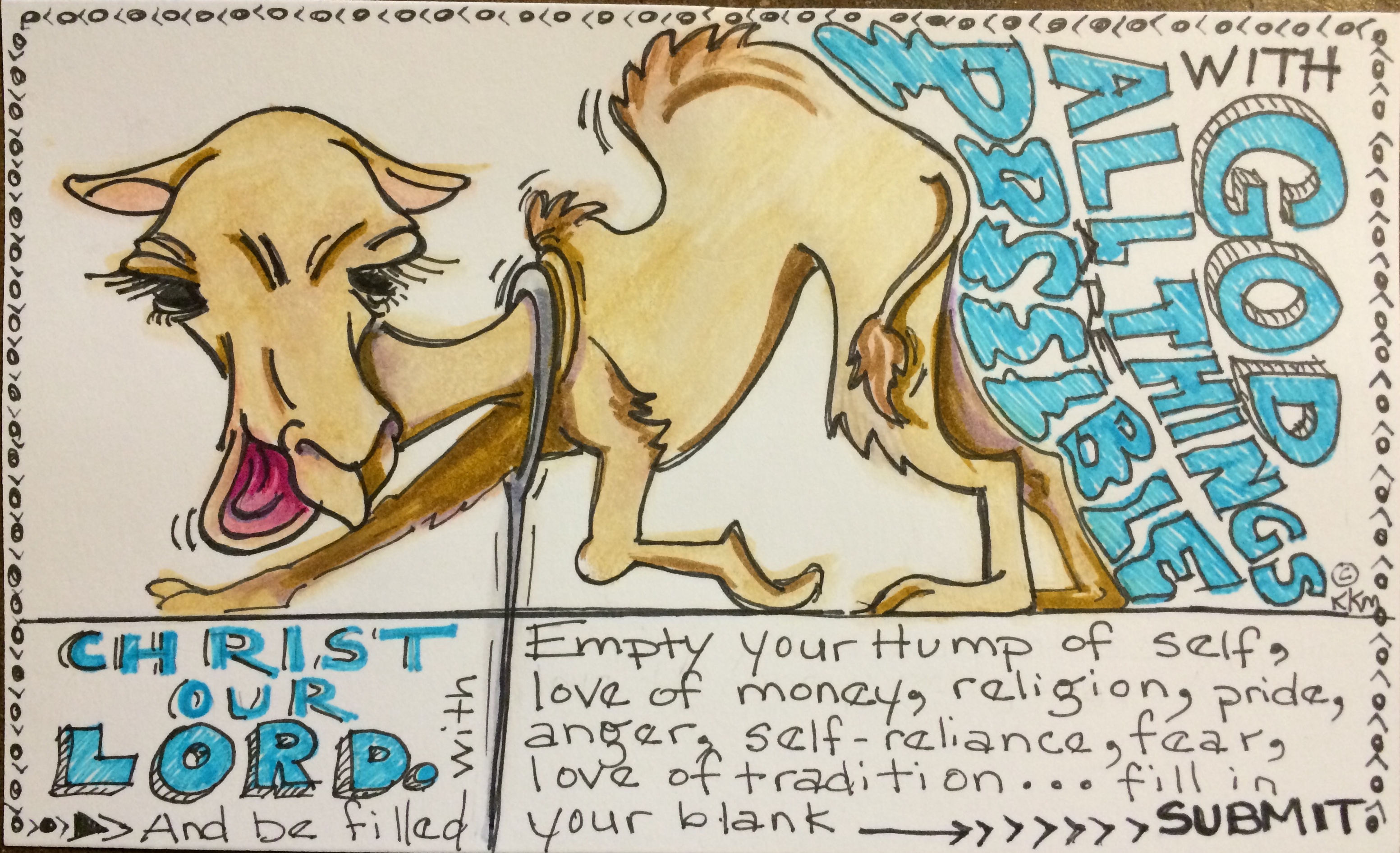 You may not be rich in “possessions” but you can be rich in “self”. Don’t get stuck in the “I” of the needle–God can push your through.