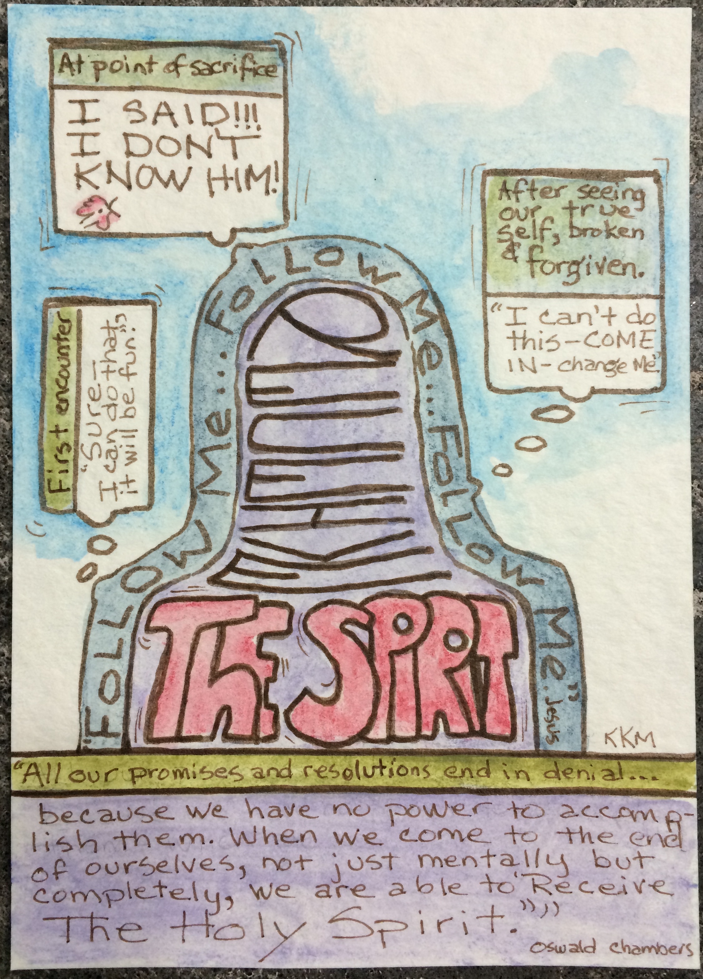 Honestly, I think I will do a disservice to try and say much here. Jesus’ call to “follow Me” rests on all our lives so individually. The only thing that is universal in the call is, we will all fail at following and we will all deny Him. Until we come to the end of our selves and receive the Holy Spirit that cycle will continue. Once received, we are guaranteed success because we trust in only one thing…”Christ in me, the hope of glory.”