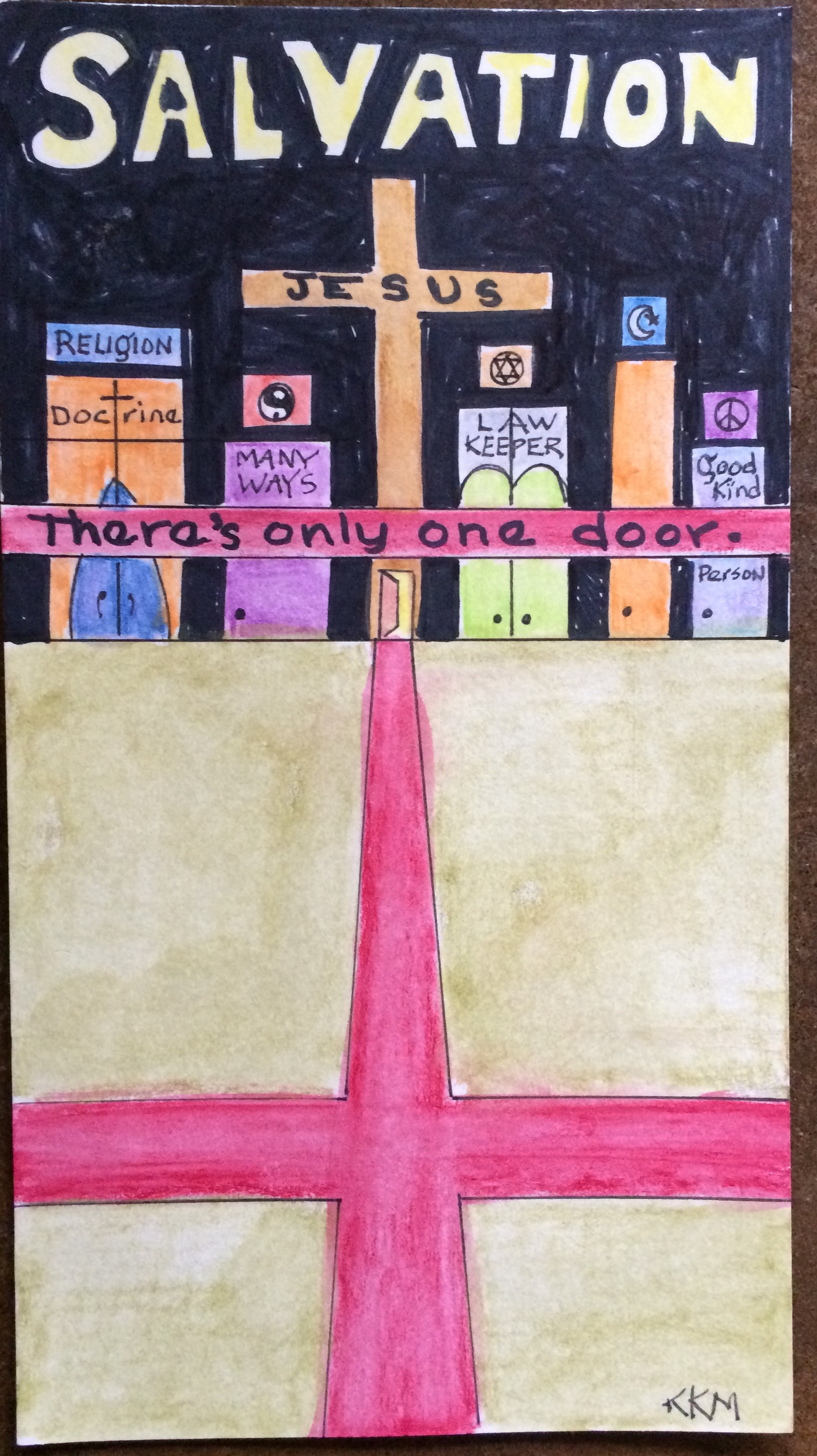 As colorful and tempting as all the other doors are there is only one way to salvation. A pretty powerful statement from Oswald Chambers today went like this,”All the pleading for salvation which deliberately ignores the cross of Christ is useless. It is knocking at a door other than the one which Jesus has already opened. We protest by saying, “but I don’t want to come that way. It is too humiliating to be received as a sinner.” God’s response, through Peter, is, “… There is no other name…by which we must be saved” Acts 4:12.”